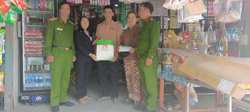 Ảnh: NHCSXH thành phố phối hợp công an thành phố tham tặng quà gia đình chị Lê Thị Thúy nhân dịp Tết Nguyên Đán Ất Tỵ