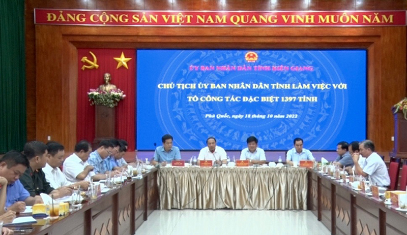 Phát biểu tại buổi làm việc, Chủ tịch UBND tỉnh Lâm Minh Thành đánh giá cao tinh thần, trách nhiệm của Tổ công tác đặc biệt 1397 tỉnh, UBND thành phố Phú Quốc và các xã phường trên địa bàn thành phố từng bước lập lại trật tự kỷ cương trong công tác quản lý đất đai, xây dựng trái phép trên địa bàn thành phố. Từ nay đến cuối năm 2022, Chủ tịch UBND tỉnh chỉ đạo Tổ công tác đặc biệt 1397 tỉnh, UBND thành phố Phú Quốc và các xã, phường xử lý nghiêm các trường hợp cố tình vi phạm.