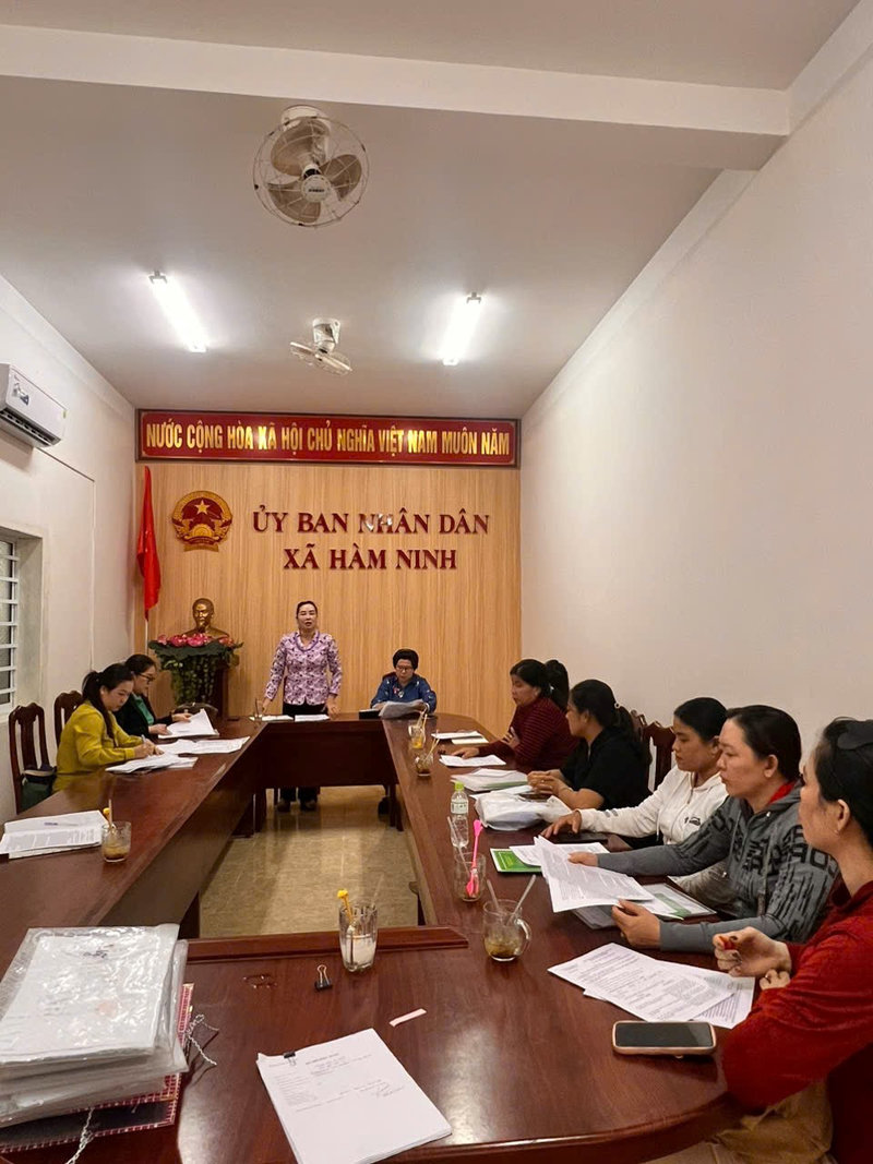 Kết luận buổi làm việc, Bà Biện Mỹ Linh, Chủ tịch Hội LHPN thành phố đã ghi nhận và đánh giá cao tinh thần trách nhiệm của Hội LHPN xã Hàm ninh trong công tác chỉ đạo, điều hành triển khai thực hiện tín dụng chính sách trên địa bàn. Đồng chí đề nghị Hội LHPN xã tiếp tục thực hiện tốt chỉ thị 40-CT/TW và Kết luận số 06-KL/TW của Ban Bí thư Trung ương Đảng về tăng cường sự lãnh đạo của đảng đối với tín dụng chính sách xã hội. Tiếp tục phát huy tinh thần trách nhiệm, tăng cường công tác kiểm tra giám sát, đặc biệt là việc sử dụng vốn sau khi ngân hàng giải ngân và đôn đốc thu hồi nợ đến hạn, lãi tồn đọng, không để phát sinh nợ quá hạn. Tập trung chỉ đạo tổ TK&VV thực hiện tốt việc quản lý nguồn vốn ưu đãi, thu hút thêm nguồn vốn ưu đãi để đáp ứng nhu cầu vay vốn của người dân, đặc biệt là Chính sách tín dụng ưu đãi góp phần thực hiện Chương trình mục tiêu quốc gia phát triển kinh tế xã hội.