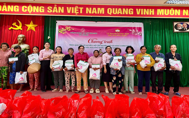 Vào ngày 30/01/2026 Ban Giám đốc Phòng giao dịch NHCSXH Phú Quốc đại diện Công đoàn cơ sở NHCSXH tỉnh An Giang đã phối hợp Ủy Ban Mặt trận Tổ quốc đặc khu Phú Quốc trao tặng 50 suất quà cho bà con là hộ nghèo, hộ cận nghèo, hộ có hoàn cảnh đặc biệt khó khăn của các khu phố Rạch Hàm Hành Ninh, khu phố Bãi Vòng Hành Ninh, khu phố Bãi Bổn Hành Ninh. Mỗi phần quà trị giá 500.000 đồng gồm nhu yếu phẩm và tiền mặt góp phần chia sẻ khó khăn, động viên các gia đình đón Tết vui tươi, đầm ấm.
