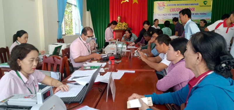 Phòng giao dịch NHCSXH thành phố Phú Quốc làm thủ tục giải ngân cho người dân vay vốn tại điểm giao dịch xã.