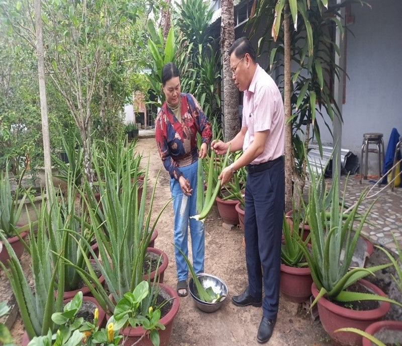 Sau khi có được nguồn vốn vay từ NHCSXH thành phố, chị Đậm đầu tư mua hàng trăm chậu đất để trồng Nha đam. Cây Nha đam rất dễ trồng, dễ sống, dễ chăm sóc, chịu hạn và rất thích hợp với đất cát pha; từ khi trồng đến khi bắt đầu cho thu hoạch khoảng 7 tháng.