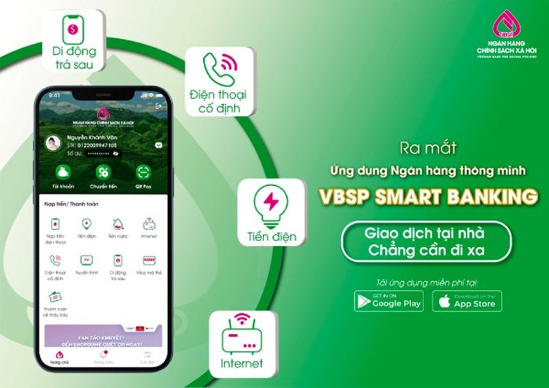 Các dịch vụ tài chính Ngân hàng Chính sách xã hội cung cấp cho khách hàng, gồm: Dịch vụ chuyển tiền (chuyển tiền nội bộ Ngân hàng Chính sách xã hội cùng chủ tài khoản, khác chủ tài khoản; chuyển tiền nhanh 24/7 đến số tài khoản, đến số thẻ mở tại các ngân hàng khác; chuyển tiền ủng hộ và các dịch vụ chuyển tiền khác); dịch vụ thanh toán (thanh toán hóa đơn: Tiền điện, tiền nước, cước viễn thông, vé tàu, vé máy bay, học phí, phí bảo hiểm; nạp tiền điện thoại, ví điện tử, nộp thuế); dịch vụ thanh toán QR Pay (thanh toán bằng mã QR trên ứng dụng VBSP SmartBanking, cho phép khách hàng thanh toán cho các nhà cung cấp thông qua tính năng quét mã QR trên ứng dụng Mobile Banking).