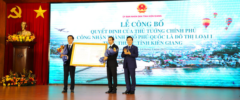 Chiều ngày 14/3, UBND tỉnh Kiên Giang tổ chức Lễ công bố Quyết định của Thủ tướng Chính phủ về công nhận thành phốPhú Quốc đạt đô thị loại I trực thuộc tỉnh Kiên Giang.