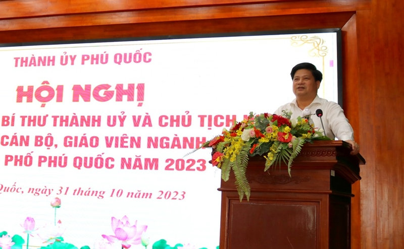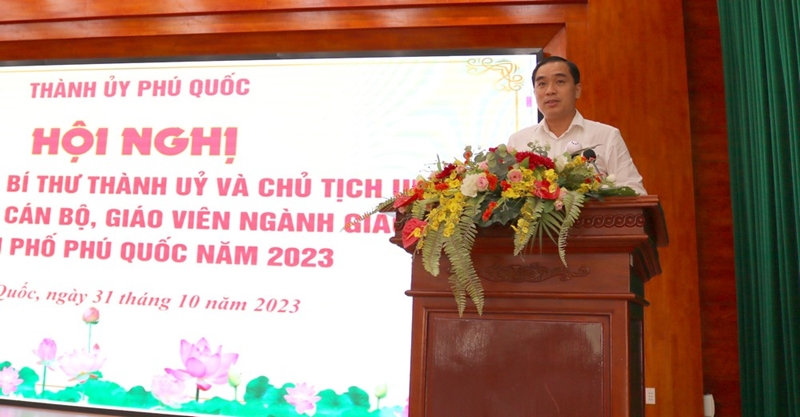 Sáng ngày 31/10/2023, đồng chí Tống Phước Trường, Ủy viên Ban Thường vụ Tỉnh ủy Kiên Giang, Bí thư Thành ủy Phú Quốc và đồng chí Huỳnh Quang Hưng, Phó Bí thư Thành ủy, Chủ tịch UBND thành phố đã có buổi tiếp xúc, đối thoại trực tiếp với gần 120 cán bộ, giáo viên là bí thư chi, đảng bộ, Ban giám hiệu, chủ tịch công đoàn và bí thư chi đoàn thuộc các trường học trên địa bàn thành phố Phú Quốc.