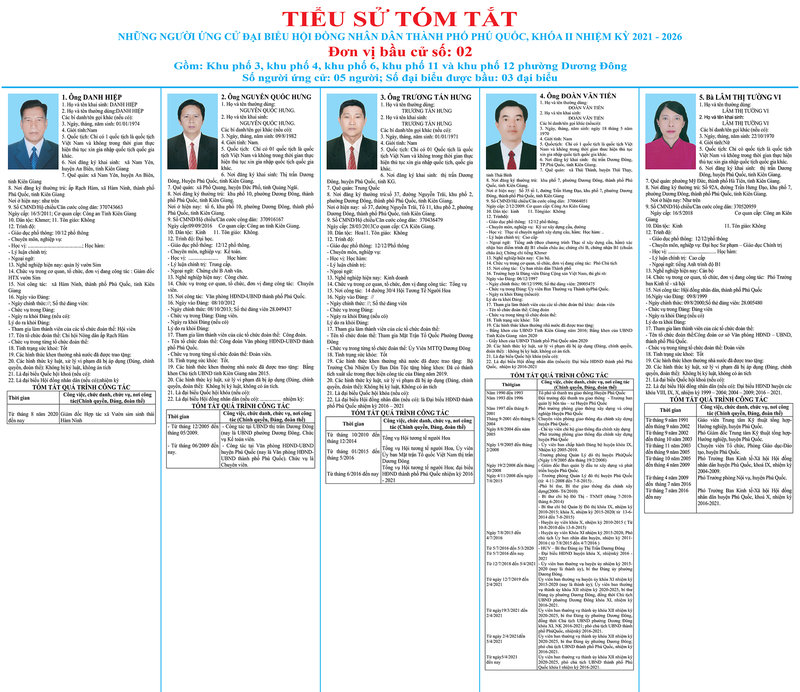 aA Dự án đầu tư Tiểu sử tóm tắt những người ứng cử đại biểu HĐND thành phố Phú Quốc, khóa II nhiệm kỳ 2021-2026 - Đơn vị bầu cử số 02 19/05/2021, 15:37 Tập tin đính kèm:TPQP-DV02.pdf Quay về Chia sẻ Z Copy link thành công Tin khác Đầu tư 3.200 tỷ đồng xây dựng đường ven biển phía Tây đảo Phú Quốc Dự án đầu tư 01/01/2024 Thêm một khu du lịch đô thị cao cấp trên đảo ngọc Phú Quốc Dự án đầu tư 05/06/2023 Danh mục công trình, dự án thực hiện trong năm 2023 trên địa bàn thành phố Phú Quốc. Dự án đầu tư 23/02/2023 Đầu tư 50 tỷ đồng tu bổ, tôn tạo Di tích lịch sử quốc gia đặc biệt Trại giam Phú Quốc Dự án đầu tư 02/12/2022 Đề xuất đầu tư dự án cảng vũ trụ du lịch tại TP. Phú Quốc Dự án đầu tư 21/02/2022 Tiểu sử tóm tắt những người ứng cử đại biểu HĐND thành phố Phú Quốc, khóa II nhiệm kỳ 2021-2026 - Đơn vị bầu cử số 10 Dự án đầu tư 19/05/2021 Tiểu sử tóm tắt những người ứng cử đại biểu HĐND thành phố Phú Quốc, khóa II nhiệm kỳ 2021-2026 - Đơn vị bầu cử số 09 Dự án đầu tư 19/05/2021 Tiểu sử tóm tắt những người ứng cử đại biểu HĐND thành phố Phú Quốc, khóa II nhiệm kỳ 2021-2026 - Đơn vị bầu cử số 08 Dự án đầu tư 19/05/2021 Tiểu sử tóm tắt những người ứng cử đại biểu HĐND thành phố Phú Quốc, khóa II nhiệm kỳ 2021-2026 - Đơn vị bầu cử số 07 Dự án đầu tư 19/05/2021 Tiểu sử tóm tắt những người ứng cử đại biểu HĐND thành phố Phú Quốc, khóa II nhiệm kỳ 2021-2026 - Đơn vị bầu cử số 06 Dự án đầu tư 19/05/2021 /tieu-su-tom-tat-nhung-nguoi-ung-cu-dai-bieu-hdnd-thanh-pho-phu-quoc-khoa-ii-nhiem-ky-2021-2026-don-vi-bau-cu-so-02