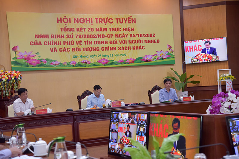Sáng 29-12, Ngân hàng Chính sách xã hội tổ chức hội nghị trực tuyến tổng kết 20 năm triển khai thực hiện chính sách tín dụng ưu đãi theo Nghị định số 78/2002/NĐ-CP, ngày 4-10-2002 của Chính phủ. Hội nghị do đồng chí Lê Minh Khái - Bí thư Trung ương Đảng, Phó Thủ tướng Chính phủ chủ trì. Tại điểm cầu Kiên Giang, hội nghị do đồng chí Nguyễn Thanh Nhàn - Ủy viên Ban Thường vụ Tỉnh ủy, Phó Chủ tịch Ủy ban nhân dân kiêm Trưởng Ban đại diện Hội đồng quản trị Ngân hàng Chính sách xã hội tỉnh chủ trì.