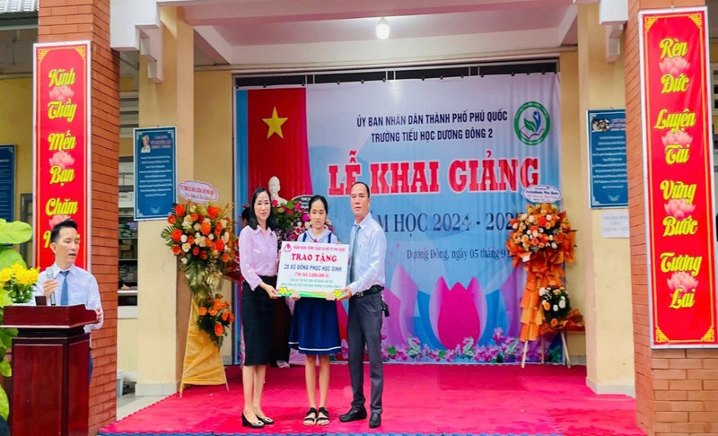 Sáng ngày 05/9, Đại diện Công đoàn Phòng giao dịch NHCSXH thành phố Phú Quốc đến dự lễ khai giảng, trao quà cho học sinh có hoàn cảnh khó khăn tại Trường Tiểu học Dương Đông 2 và Trường Tiểu học và Trung học cơ sở Gành dầu. Tổng giá trị các phần quà là 10 triệu đồng (gồm 25 bộ đồng phục và 5 triệu đồng tiền mặt).