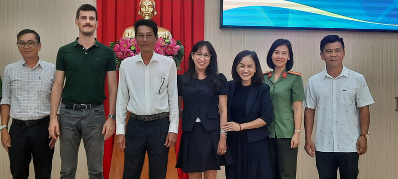 Lãnh đạo Ủy ban Nhân dân Thành phố Phú Quốc chụp hình lưu niệm cùng ông CHARLES BESNARD viên chức lãnh sự tổng lãnh sự quán Hoa Kỳ.